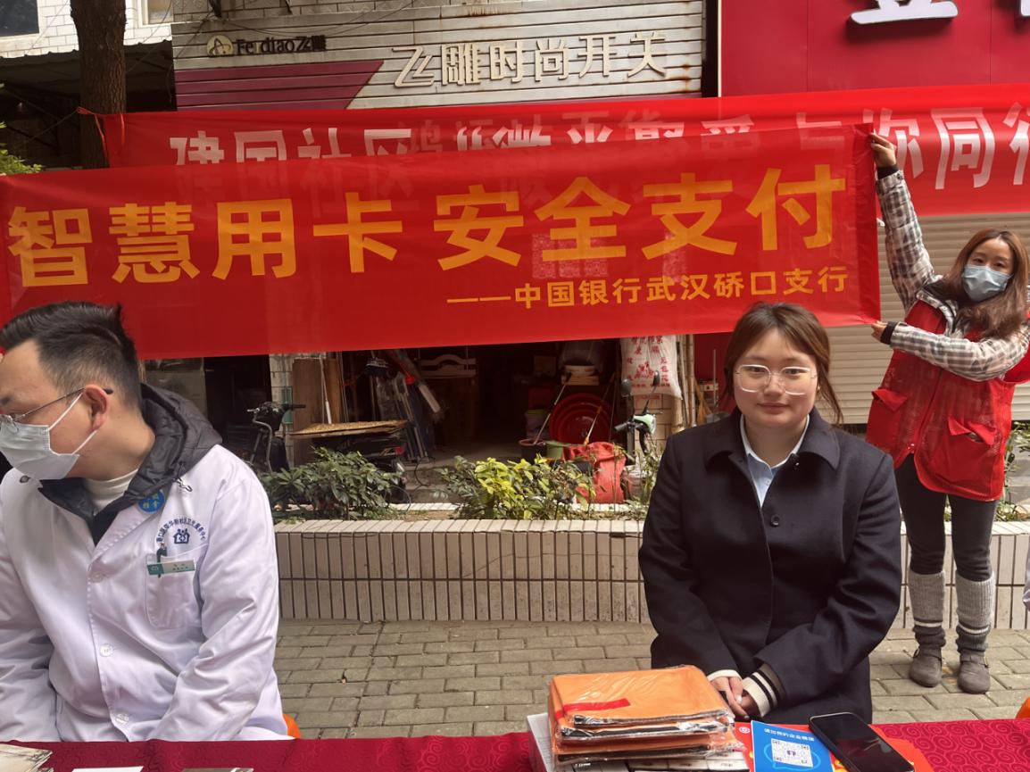 京中网(湖北日报)讯(通讯员 唐米娜)近日,中国银行武汉桥口支行(以下简称“中行桥口支行”)走进创始社区,开展以“智能用卡,安全服务”为主题的反诈骗宣传活动,将专业金融知识和便捷服务送到居民家门口,有效提升社区防范金融风险的能力,打造一个守护老百姓“钱”的交易所。 ”